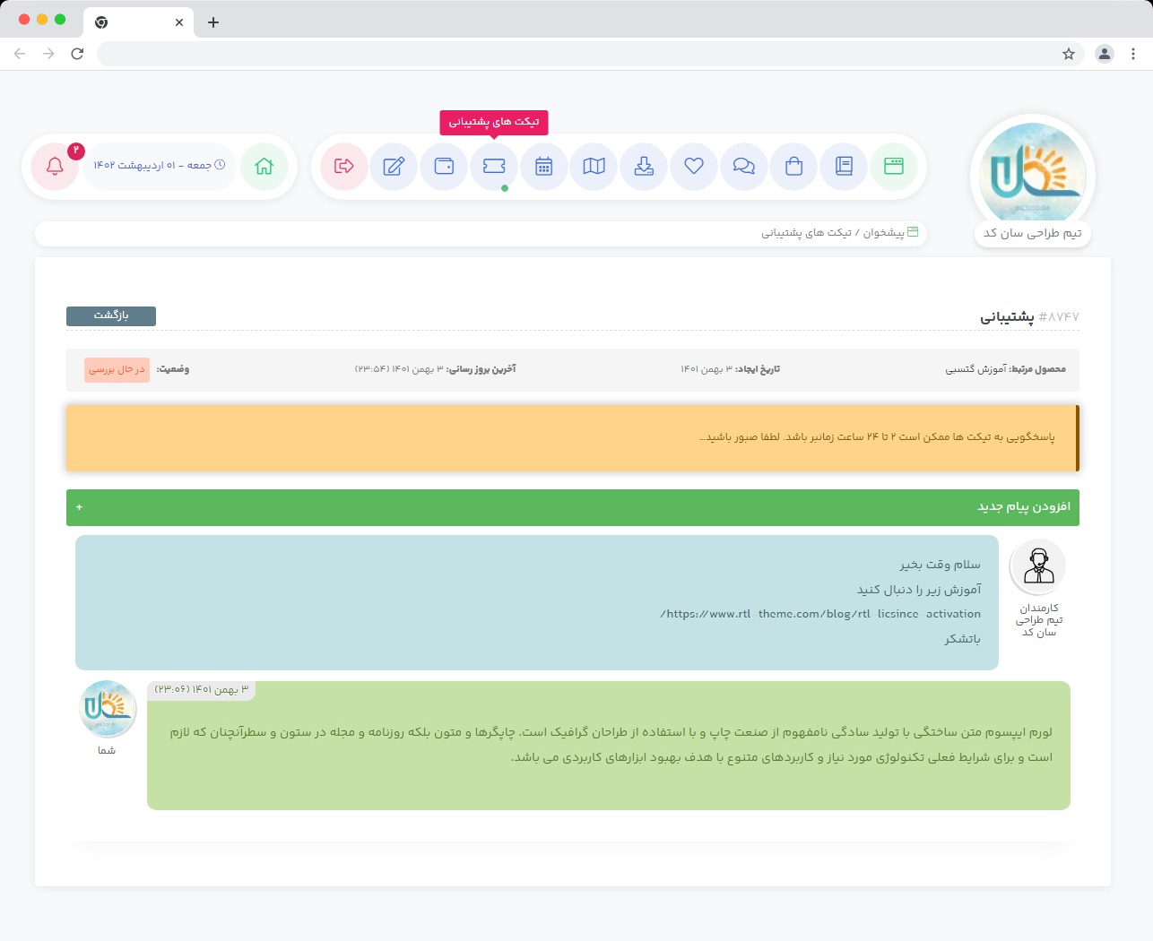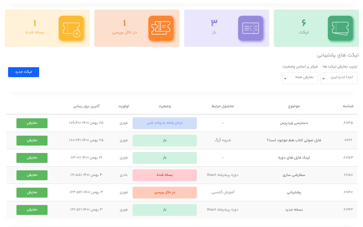 • امکان ارسال تیکت کاربران