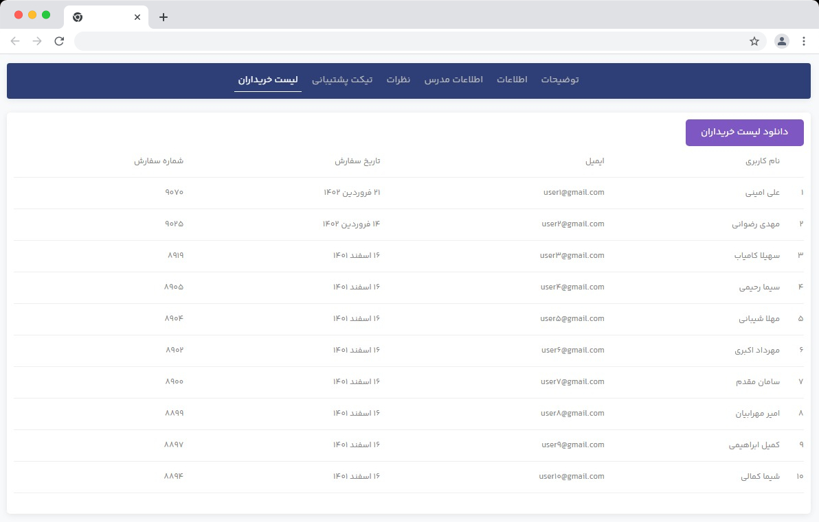• امکان دریافت خروجی اکسل از لیست خریداران